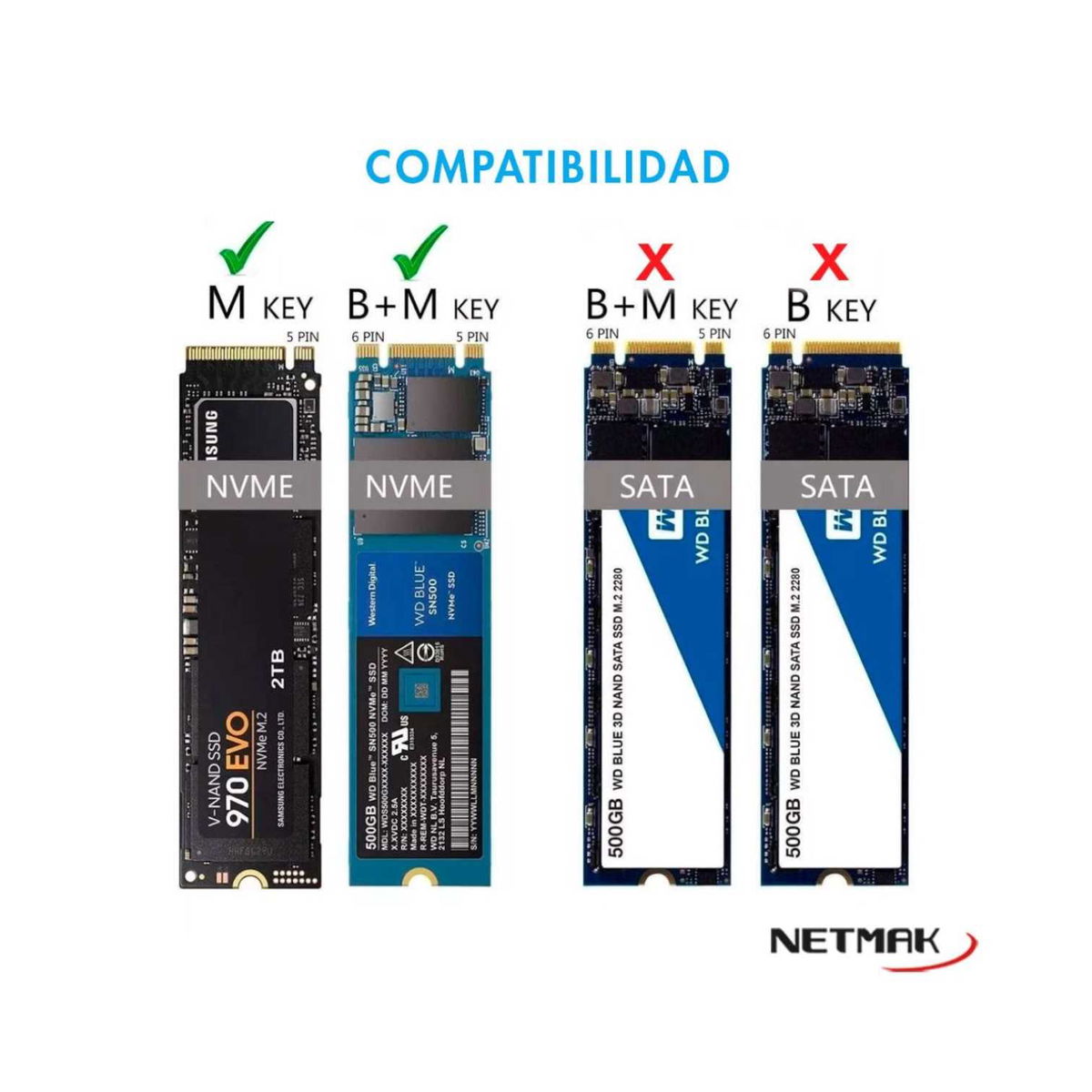 Compatible con discos M.2 NVMe con puerto M Key o B+M Key.
