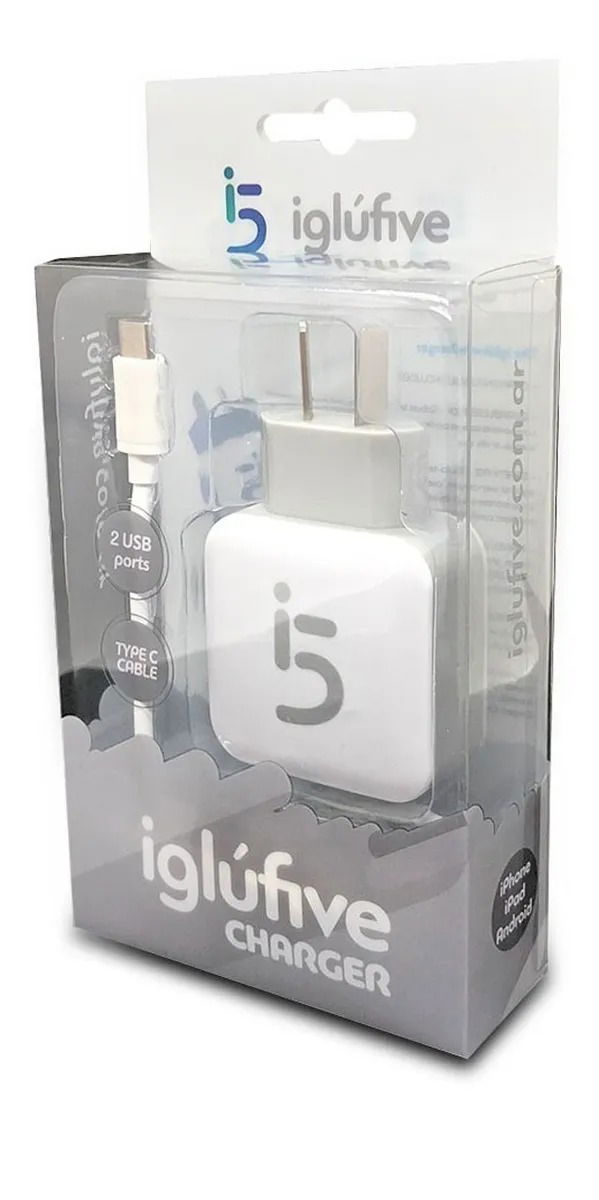 Cargador Iglufive Tipo C 2 Entradas + 1 Cable 2.1a