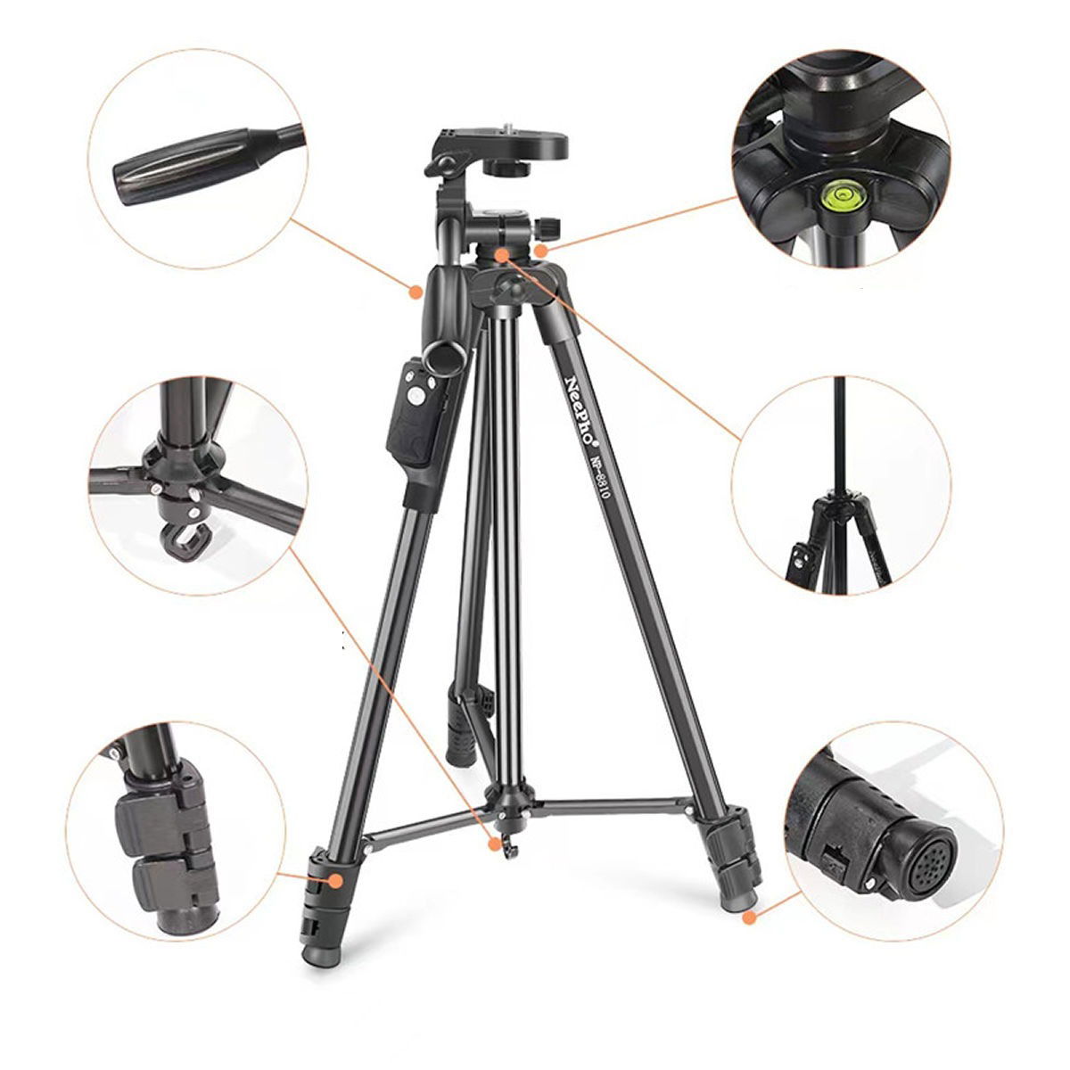 El Neepho 8810 es un trípode de aluminio de alta resistencia, ideal para fotógrafos y videógrafos que buscan estabilidad, calidad y compatibilidad en un solo producto. Diseñado para cámaras DSLR y teléfonos, este trípode garantiza una experiencia profesional en cada toma, permitiéndote capturar imágenes y videos con precisión y facilidad.