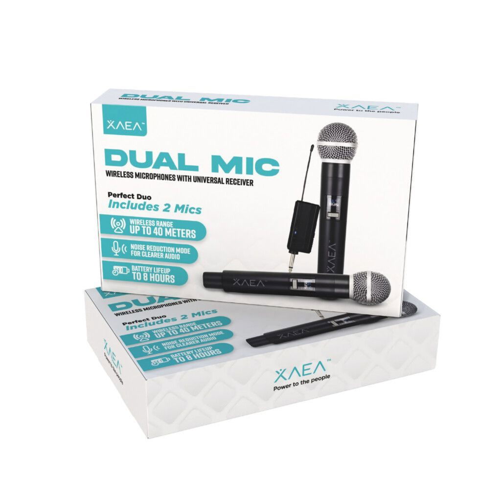 Cada micrófono cuenta con batería de 1500mAh y el receptor con 650mAh, ambos recargables por puerto Tipo C. Incluye cable de carga y adaptador 3.5mm, además de interruptor ON/OFF para un uso sencillo.