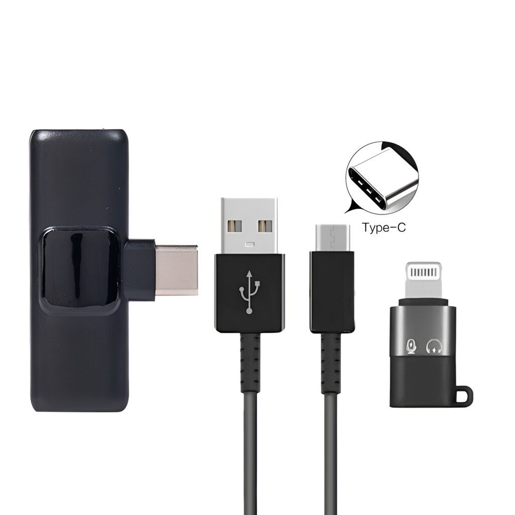 El MICRÓFONO CLIP INALÁMBRICO INDIVIDUAL TIPO C + IP es la solución ideal para creadores de contenido, entrevistas y transmisiones en vivo. Su diseño compacto con clip permite fijarlo fácilmente a la ropa, asegurando una grabación clara y sin restricciones de movimiento.