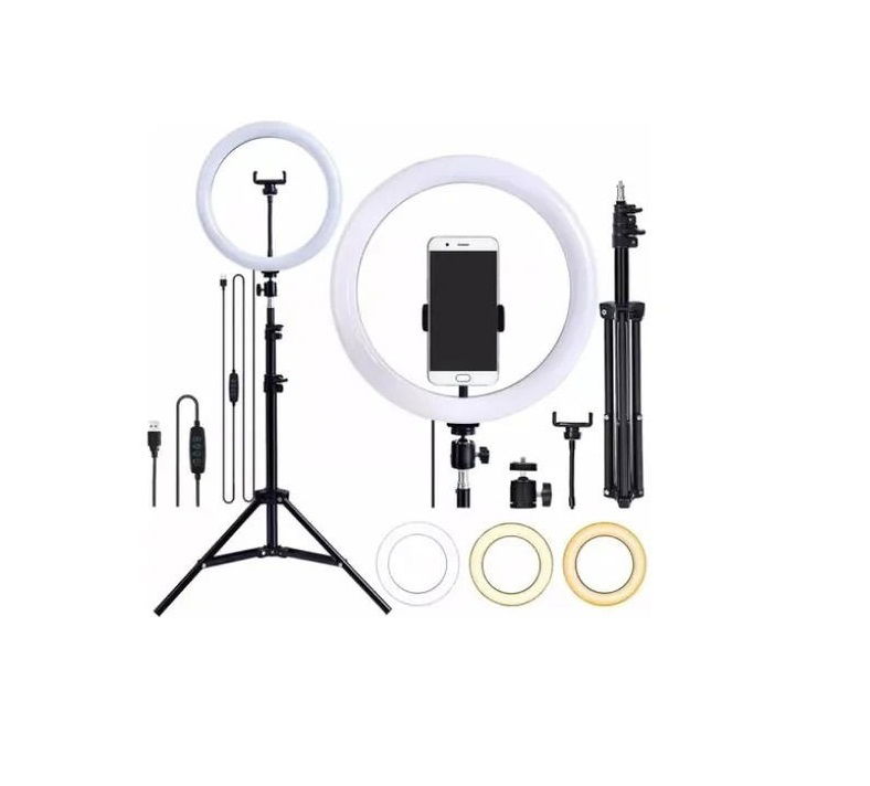 - Trípode con dos trabas reguladoras. Medidas: 89cm mínimo y 2,10mts máximo