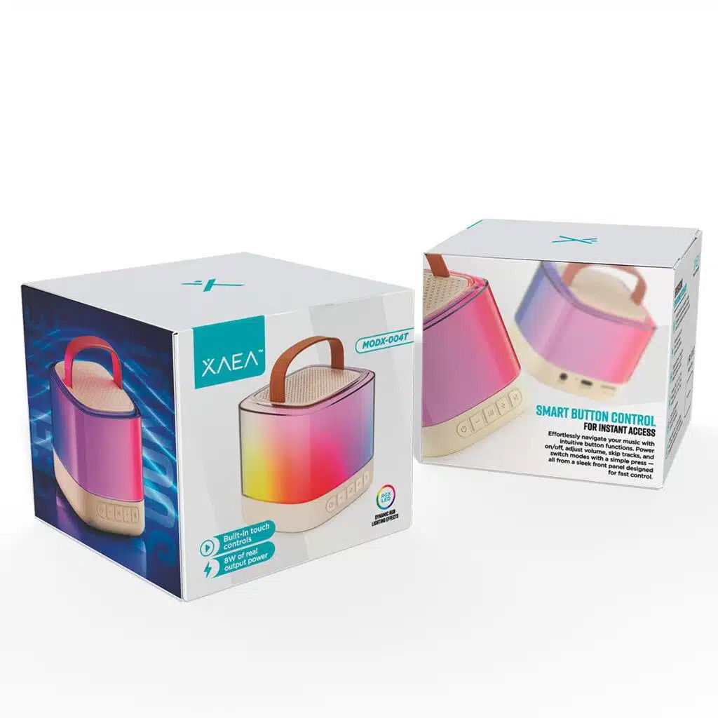 Un parlante Bluetooth pequeño, liviano y funcional. Con 3W de potencia, reproducción desde USB, TF, FM o TWS, y efectos LED que lo hacen destacar. Batería de 400mAh, carga por puerto Tipo C y hasta 3 horas de uso continuo. Incluye cable de carga.