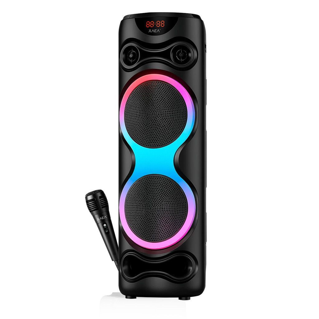 Con doble parlante de 10" y 20W de potencia real, este equipo ofrece un audio claro y potente para animar cualquier reunión. Su batería de 3600 mAh garantiza varias horas de uso continuo. Incluye micrófono inalámbrico, control remoto y múltiples entradas: TF, USB, AUX y MIC de 6,5 mm. Ideal para eventos, karaoke y entretenimiento en casa.